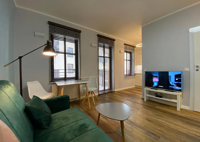 Эти 1-комнатные апартаменты разместились в районе Средместье. За 22 минут можно доехать до аэропорта имени Коперника. Zeslancom Sybiru - одна из достопримечательностей, расположенных неподалеку.